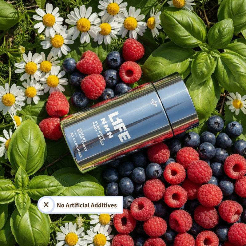 💬 المبدأ: لا نبطئ الشيخوخة، بل ندعم جسمك ليتجاوزها. 🚫 لا يحتوي على أي منشطات. لا إضافات صناعية. لا تنازلات. 🌱 النتيجة: دعم يومي لإنتاج NAD⁺، وإصلاح الحمض النووي، وطاقة حقيقية من الداخل.