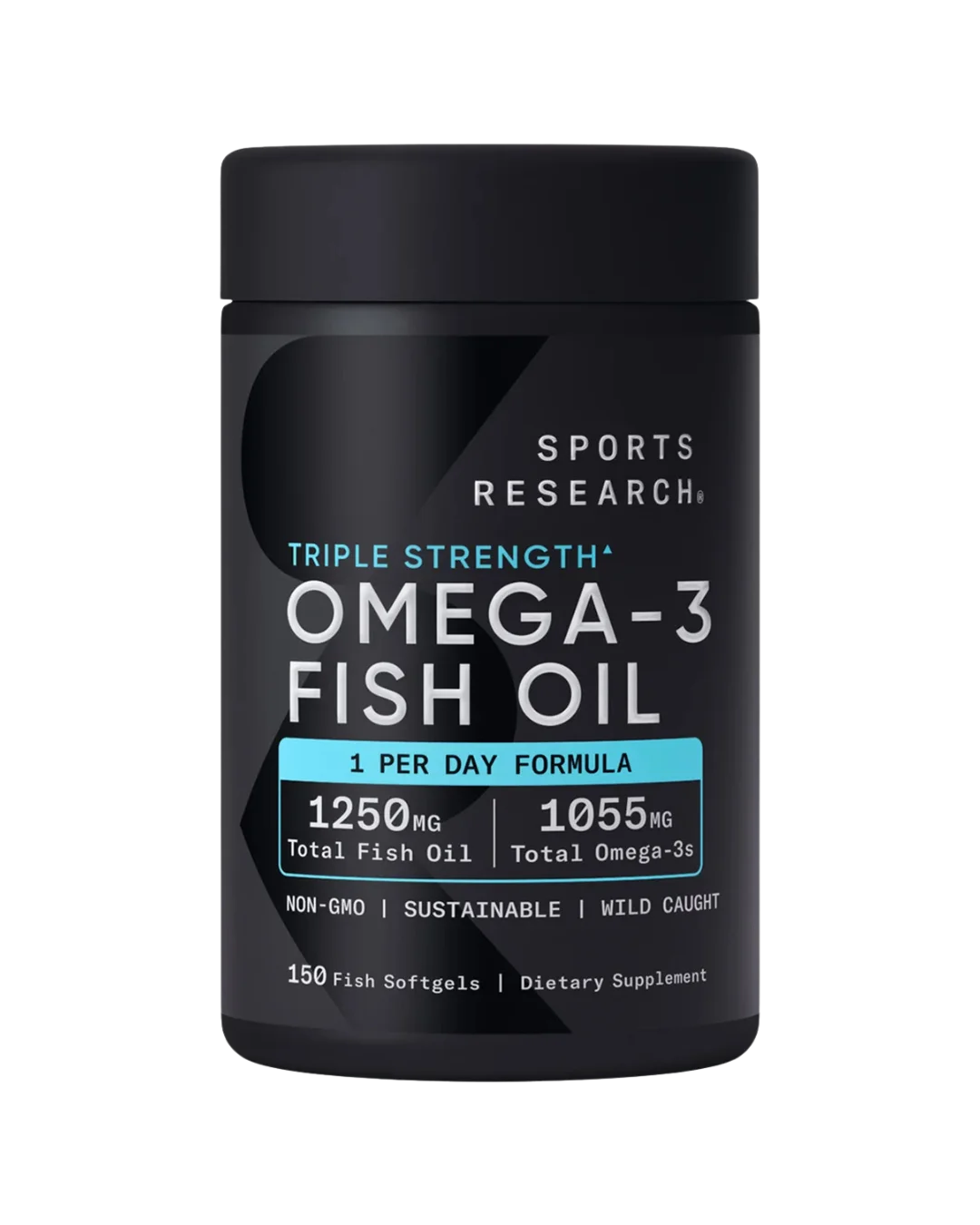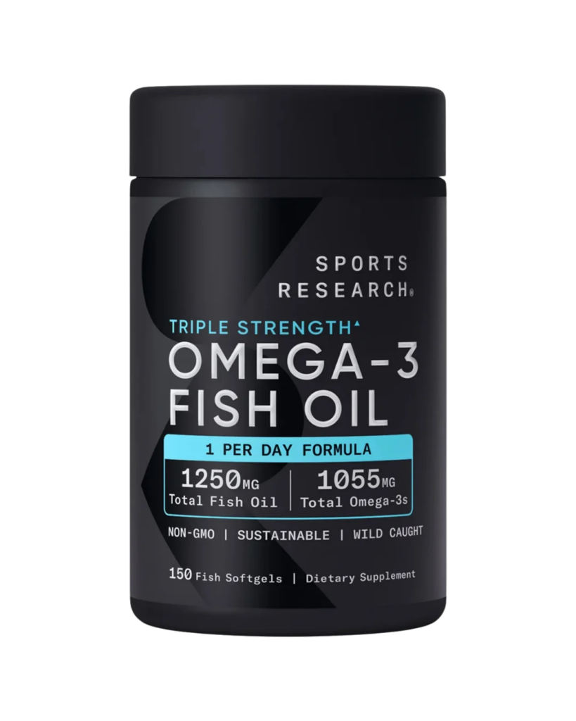Omega-3 Fish Oil Triple Strength 1250mg من Sports Research هو مكمل غذائي عالي الجودة يعتمد على زيت السمك البري (AlaskOmega®) المستخرج من سمك البلوق الألاسكي البري، ويُقدّم تركيزًا عاليًا من الأحماض الدهنية أوميغا-3، من أهمها: